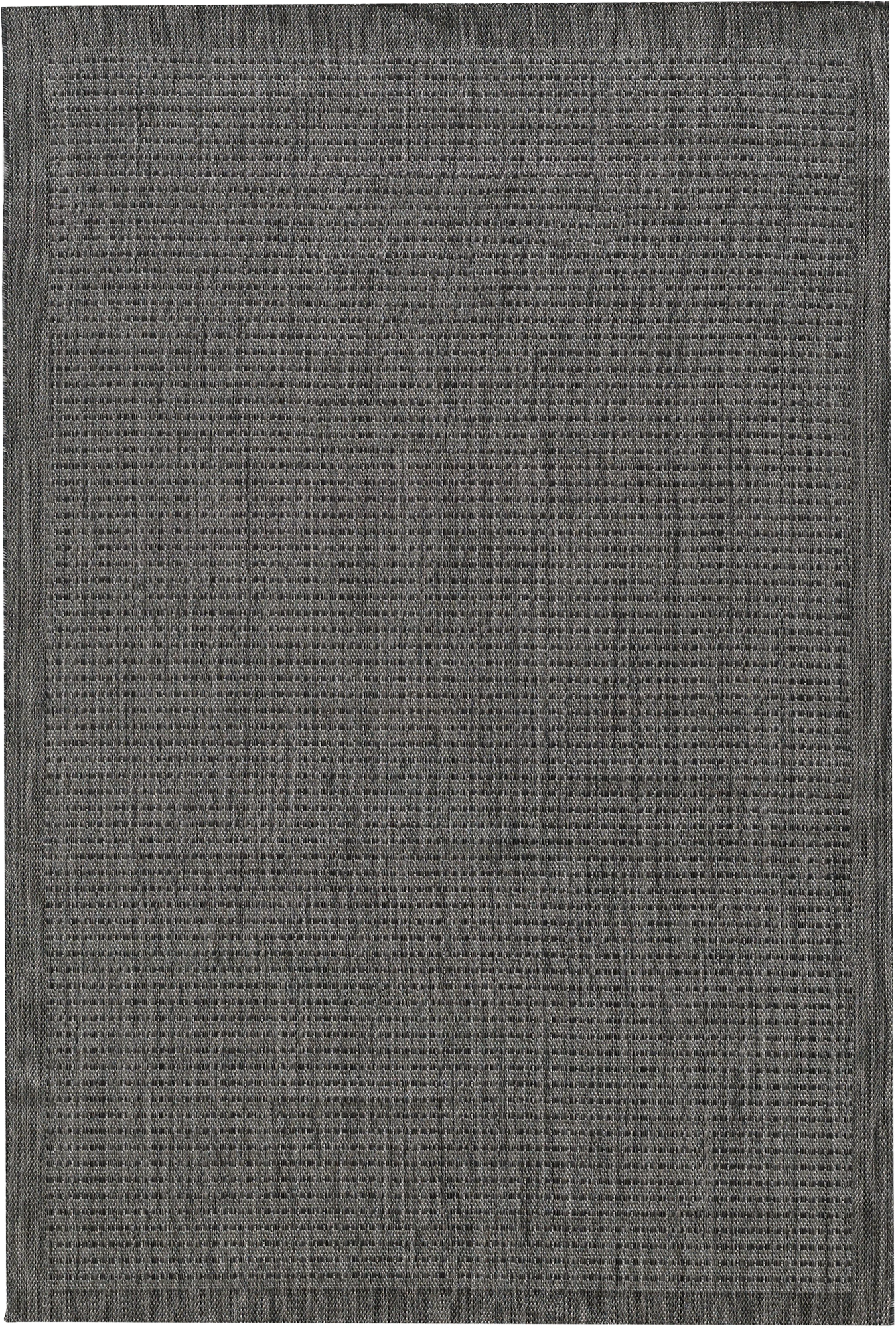 Define your space with the chic, elegant simplicity of this area rug in a dramatic, solid black. This piece provides a powerful and sophisticated foundation that anchors any room with a touch of modern drama. Made from soft and durable PP Heatset Friese, it's a versatile choice designed to bring its bold style to both indoor and outdoor settings.