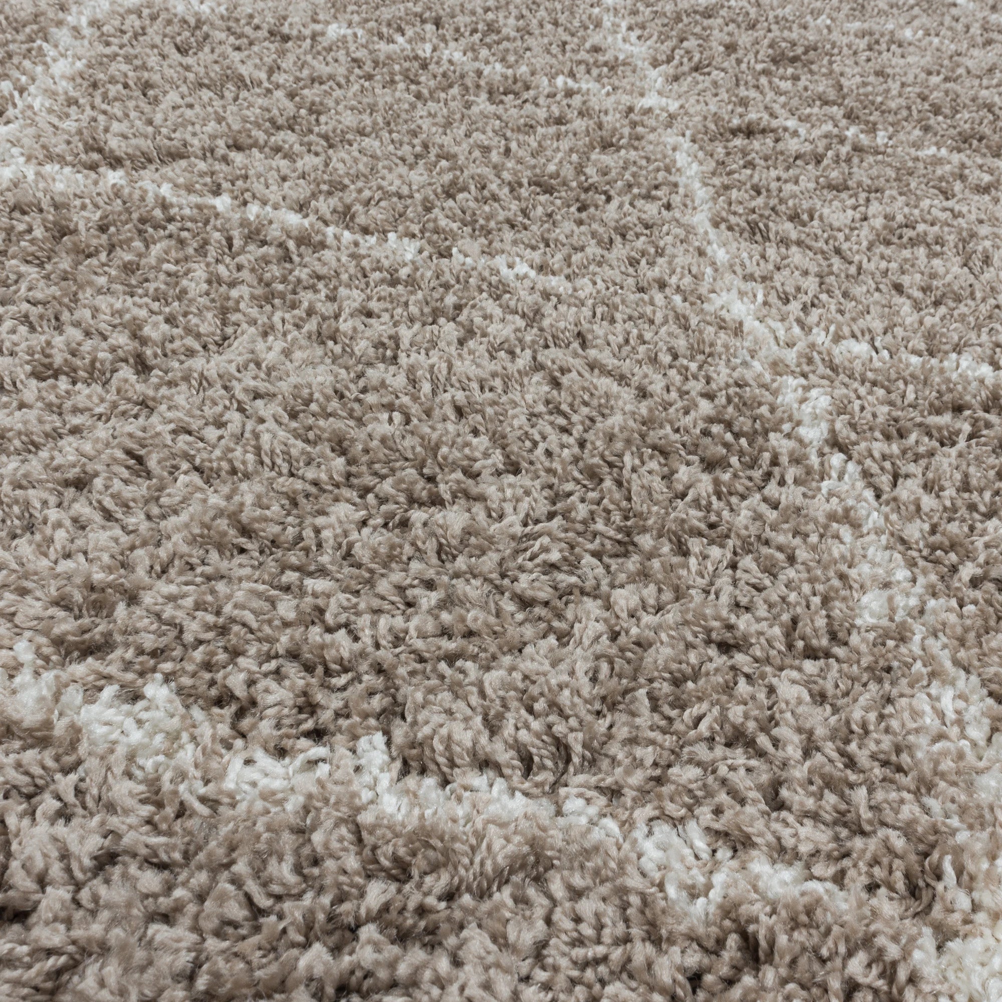 Indulge in timeless elegance and comfort with Bella Rugs. This beige geometric shaggy rug is a safe, durable, and exceptionally soft choice for creating a chic, cozy, and inviting sanctuary in your home.