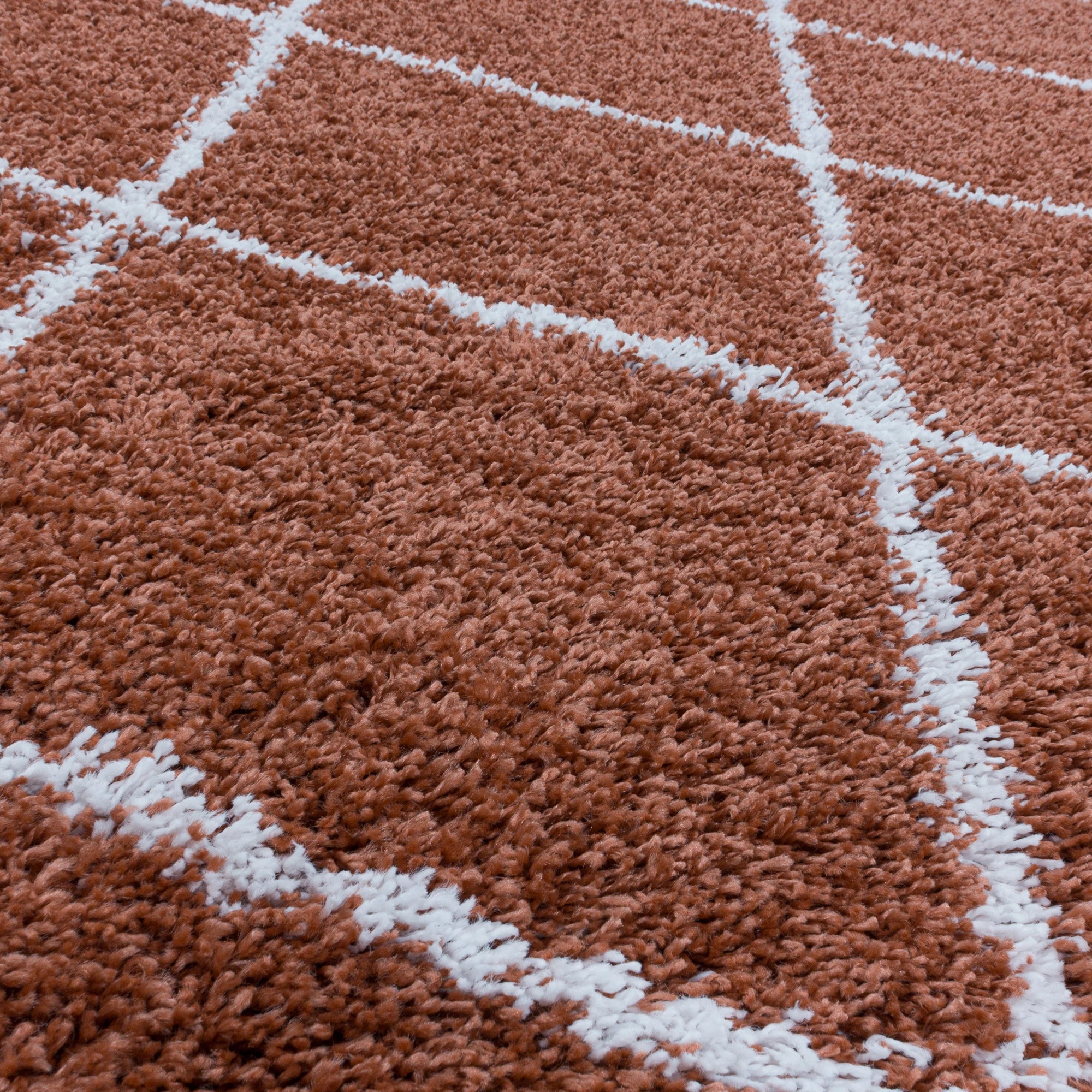 Create a floor that is a masterpiece of chic, warm style with this beautiful tessellated diamond rug in a rich terracotta. This piece offers a sophisticated geometric pattern that enhances any modern space with a touch of earthy luxury. Crafted from plush PP Shaggy, it combines a deep, soft 30.0mm pile with easy-care practicality.