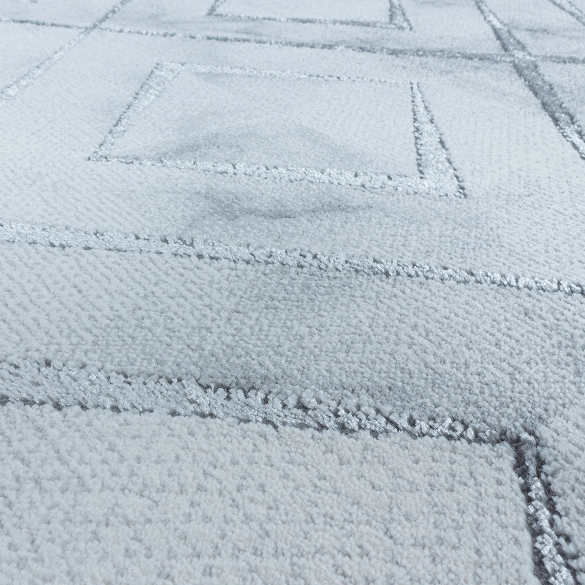 A modern and elegant rug with a classic silver marble pattern.