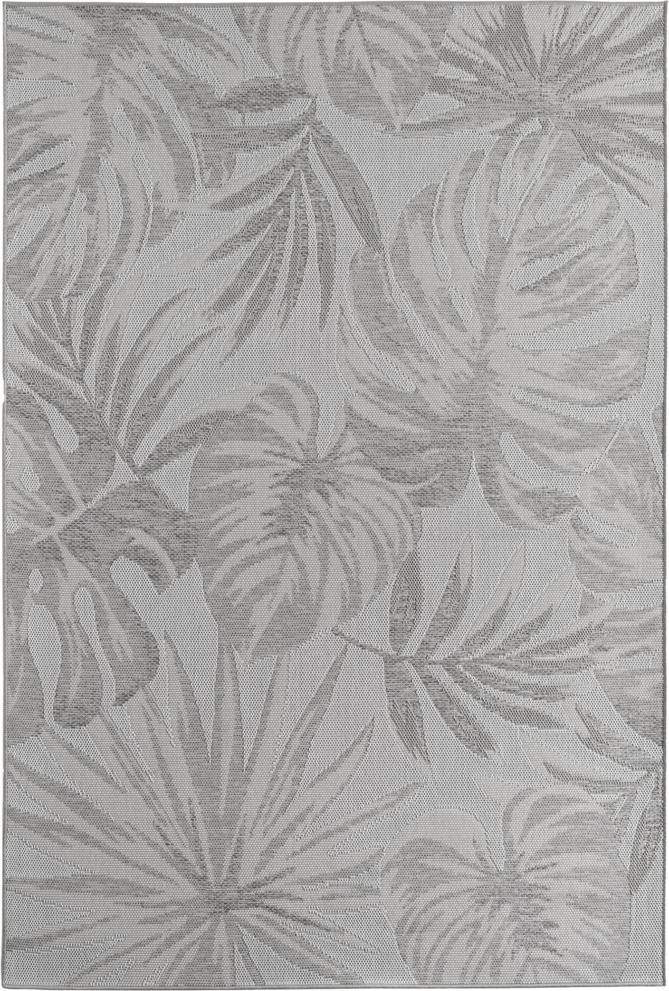 A modern tropical rug in a sophisticated, versatile gray.