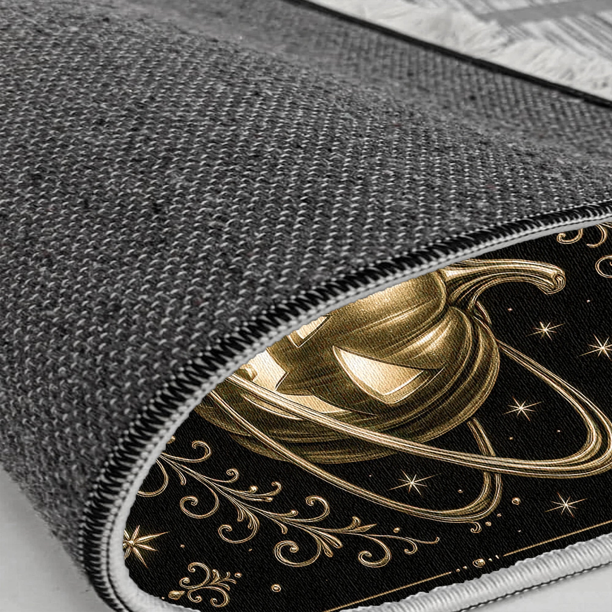 Verleihen Sie Ihrer Festtagsdekoration mit diesem luxuriösen und mystischen Teppich einen Hauch von Luxus – perfekt für ein anspruchsvolles Halloween-Thema. Im Zentrum steht ein faszinierender , goldfarbener Kürbis , der von kosmischen, an Saturn erinnernden Ringen umgeben ist. Vor einem tiefen, dunklen Hintergrund wird das Design von filigranen goldenen Ranken und funkelnden Sternen eingerahmt und verleiht dem Teppich eine elegante, gotische und exklusive Note. Gefertigt aus strapazierfähigem Polyester mit einem weichen , 8 mm hohen Flor , ist dieser Teppich komfortabel und gleichzeitig robust. Die stabile Baumwollrückseite sorgt für Langlebigkeit, und die Waschbarkeit garantiert, dass sein opulenter Stil Saison für Saison mühelos erhalten bleibt.