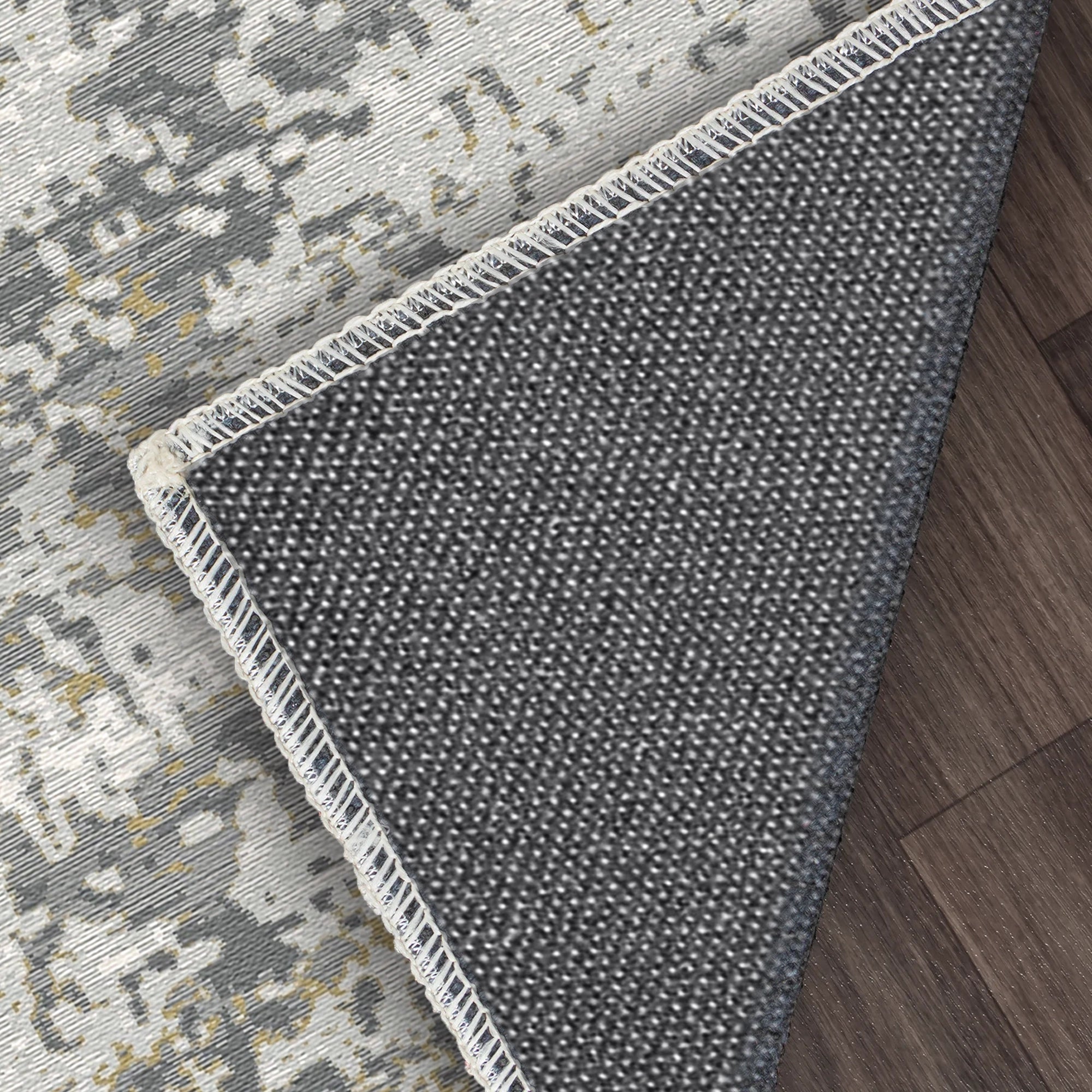 Dieser Teppich, meisterhaft für die hohen Ansprüche des Jahres 2026 entwickelt, nutzt modernste Digitaldrucktechnologie , um seine komplexen Farbnuancen und die markante, gealterte Textur in gestochen scharfer Klarheit wiederzugeben. Die Oberfläche aus hochwertigen Polyesterfasern sorgt für ein seidig-weiches Laufgefühl und einen lichtreflektierenden Glanz, der die verschiedenen Grautöne lebendig wirken lässt. Die Basis aus natürlicher Baumwolle bietet eine umweltfreundliche, atmungsaktive und stabile Grundlage. Für maximale Praktikabilität ist dieser Teppich vollständig maschinenwaschbar , sodass Sie sein modernes, elegantes Aussehen mühelos erhalten können.