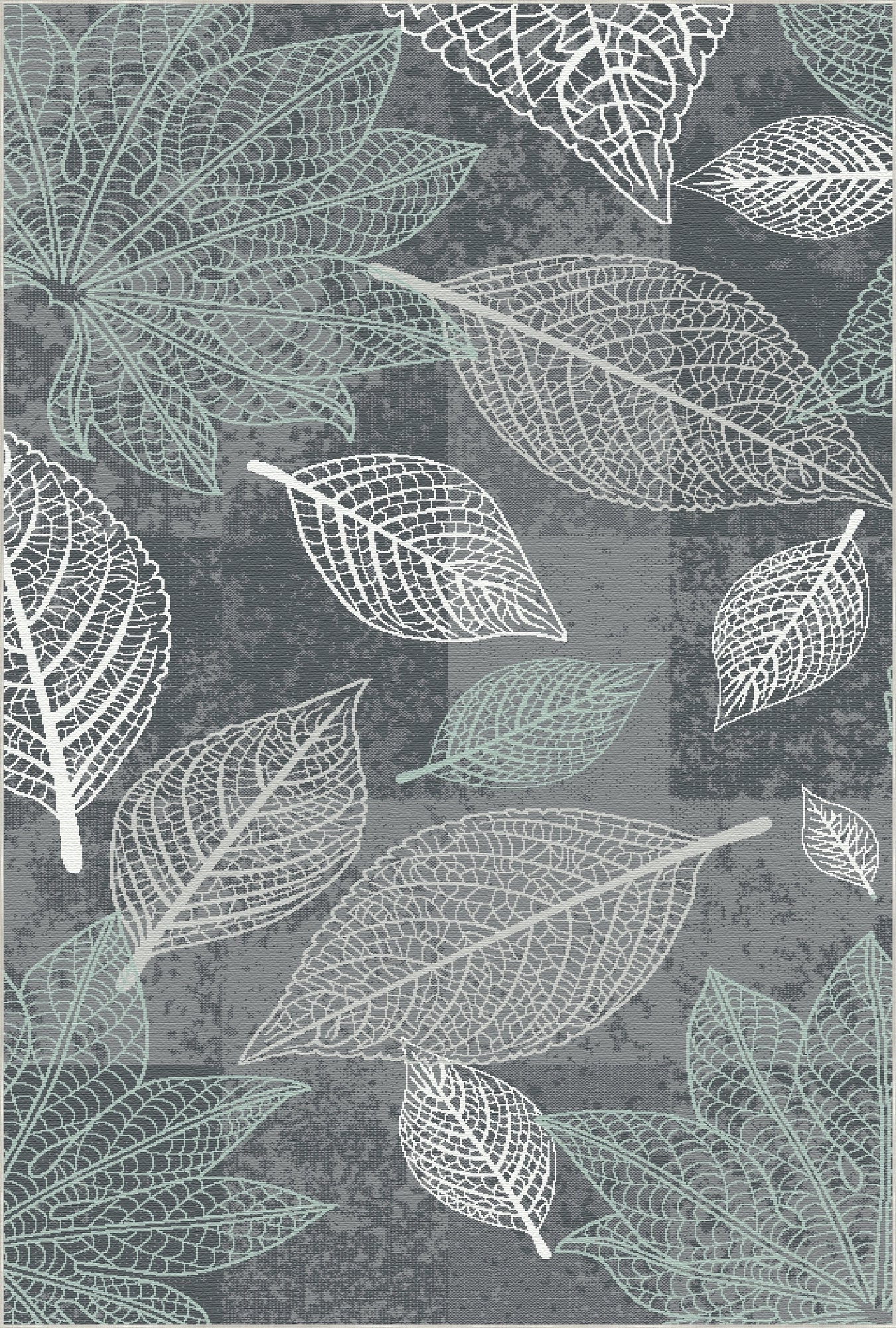 Verleihen Sie Ihrem Zuhause mit unserem Teppich „Skelettmuster“ in Anthrazit einen Hauch von dramatischer Eleganz und geheimnisvoller Natürlichkeit. Das Design interpretiert das Skelettblatt-Motiv auf ausdrucksstarke und kontrastreiche Weise: Feine weiße und zarte türkisfarbene Blattadern leuchten auf tief anthrazitgrauem Hintergrund. Die sich überlappenden Muster zarter Blätter erzeugen eine raffinierte visuelle Textur, die perfekt zu modernem Industrie-Stil, urbanem Chic oder minimalistisch-maskulinem Dekor passt.