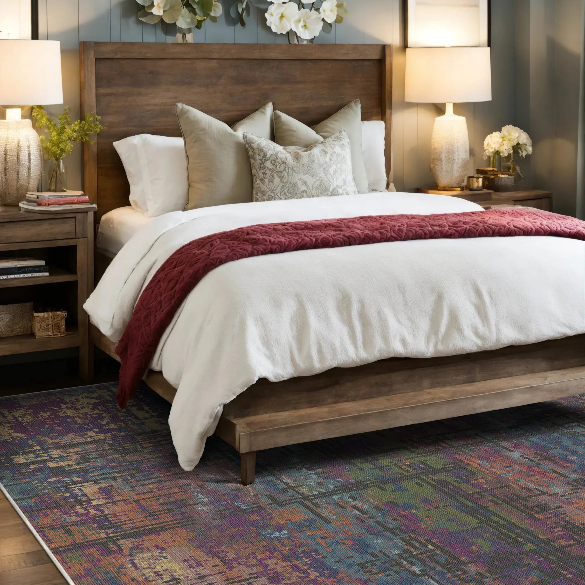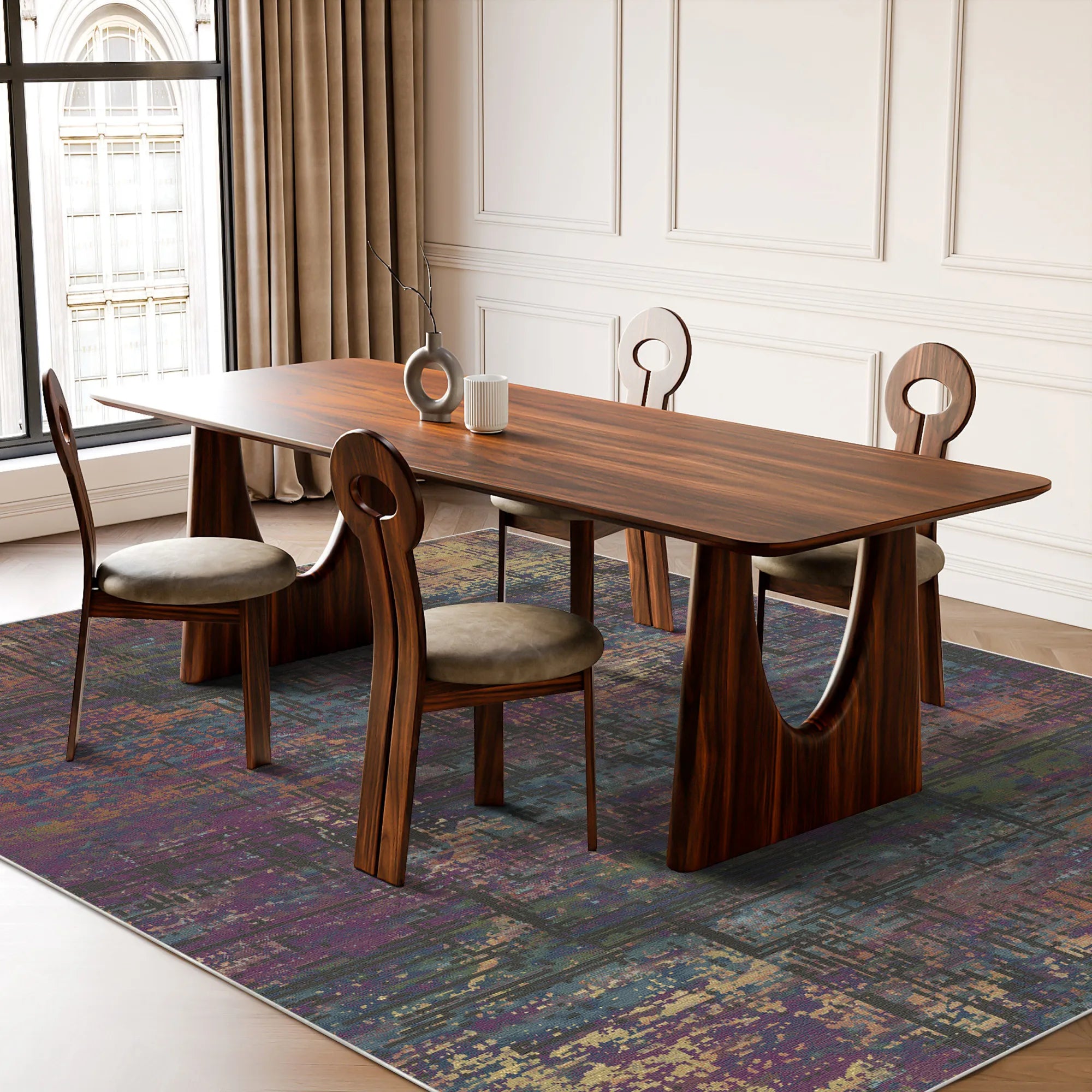 Verleihen Sie Ihrem Wohnraum mit diesem faszinierenden Teppich eine ganz neue Note – eine gelungene Kombination aus industriellem Charme und künstlerischem Ausdruck. Der hochauflösende Digitaldruck zeigt ein komplexes „Glitch“-Mosaik aus tiefen Pflaumen-, Orange- und Türkistönen, das an die Optik verwitterter urbaner Oberflächen erinnert. Dieses Polyester-Meisterwerk ist perfekt für den modernen Lebensstil: Es ist absolut tierfreundlich , kaschiert effektiv Tierhaare und ist widerstandsfähig gegen Kratzer durch verspielte Krallen.