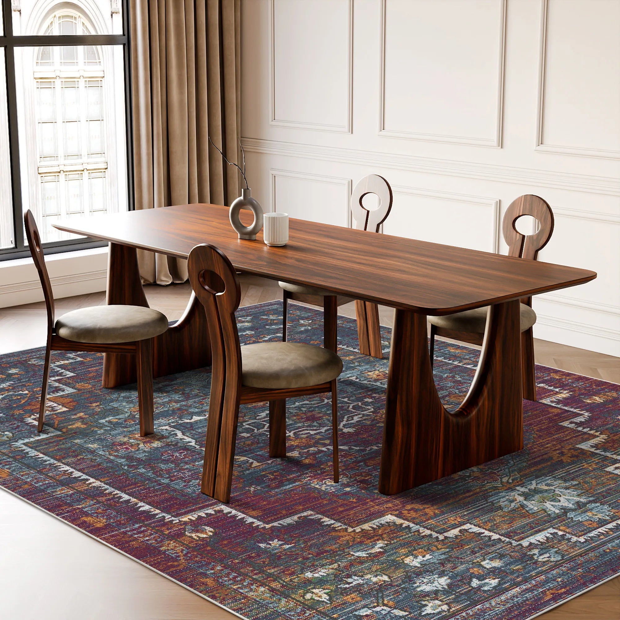 Der Teppich „Nocturnal Stepped Medallion“ vereint meisterhaft eine intensive, vielschichtige Ästhetik mit den hohen Anforderungen des modernen Haushalts. Er ist aus hochwertigen, dichten Polyesterfasern gewebt und bietet ein samtweiches, wolkenartiges Gefühl unter den Füßen bei gleichzeitig hoher Strapazierfähigkeit. Dank unserer fortschrittlichen Farbfixierungstechnologie bleiben die tiefen Indigo- und satten Pflaumentönen auch nach vielen Wäschen strahlend und leuchtend. Für maximale Sicherheit sorgt die hochwertige, integrierte rutschfeste Unterseite, die fest auf Ihren Parkett- oder Fliesenböden haftet und dafür sorgt, dass der Teppich ohne zusätzliche Unterlagen perfekt flach und sicher liegt. Der Teppich ist vollständig maschinenwaschbar und für die Verwendung mit Saugrobotern optimiert. Er bringt den zeitlosen Charme eines alten Palastes in Ihr Zuhause – ganz ohne Pflegeaufwand.