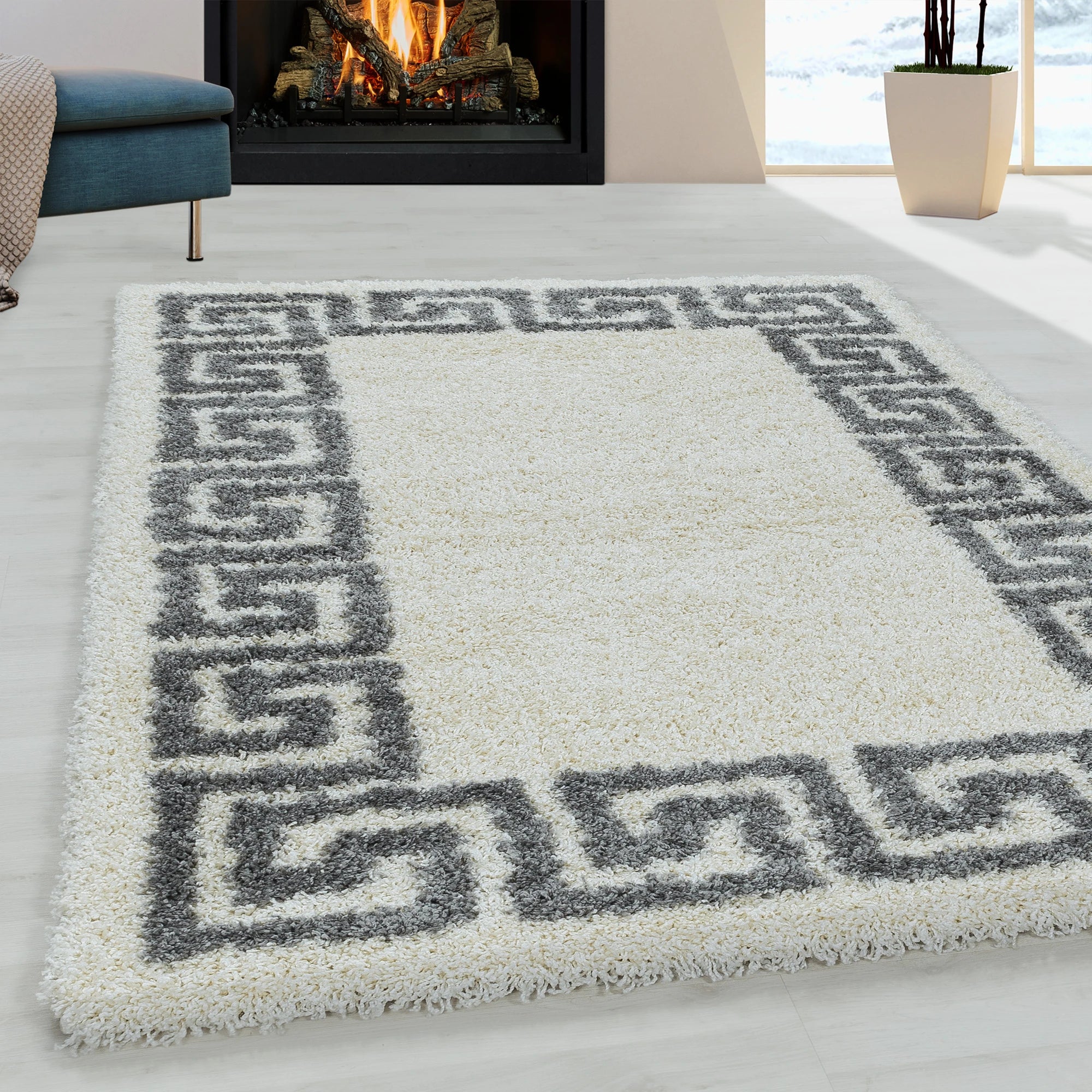 Schaffen Sie einen hellen, luftigen und eleganten Rückzugsort mit diesem wunderschönen, neutralen Teppich mit Mäandermuster in vielseitigem Creme. Das komplexe, klassische Muster verleiht dem Raum eine subtile Textur und raffinierte Kunstfertigkeit, während der flauschige, zottelige Flor für ultimativen Komfort sorgt. Dieser Indoor-Teppich aus strapazierfähigem PP-Shaggy verleiht jedem Raum Ruhe und Eleganz.