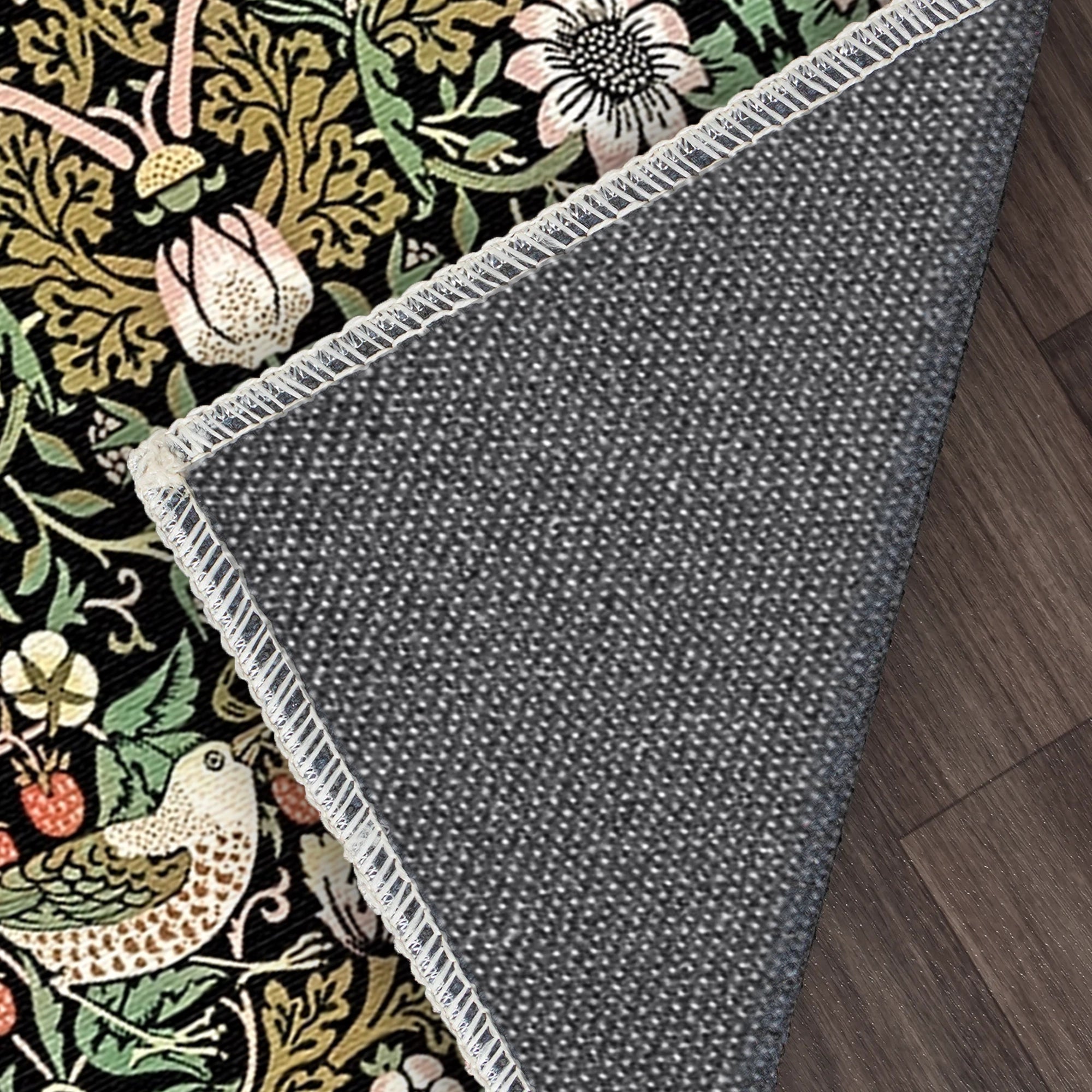 Tauchen Sie ein in die Welt zeitloser Kunst mit unserem Teppich „Obsidian Heritage Bird“ . Dieses Design ist eine Hommage an die legendäre Arts-and-Crafts-Bewegung und besticht durch ein raffiniertes, symmetrisches Muster aus Singvögeln, reifen Erdbeeren und blühenden Ranken. Vor dem tiefschwarzen Hintergrund bilden das satte Waldgrün und die zarten rosa Akzente einen kraftvollen visuellen Kontrast, der jedem Raum einen Hauch von Geschichte und maximalistischem Luxus verleiht.