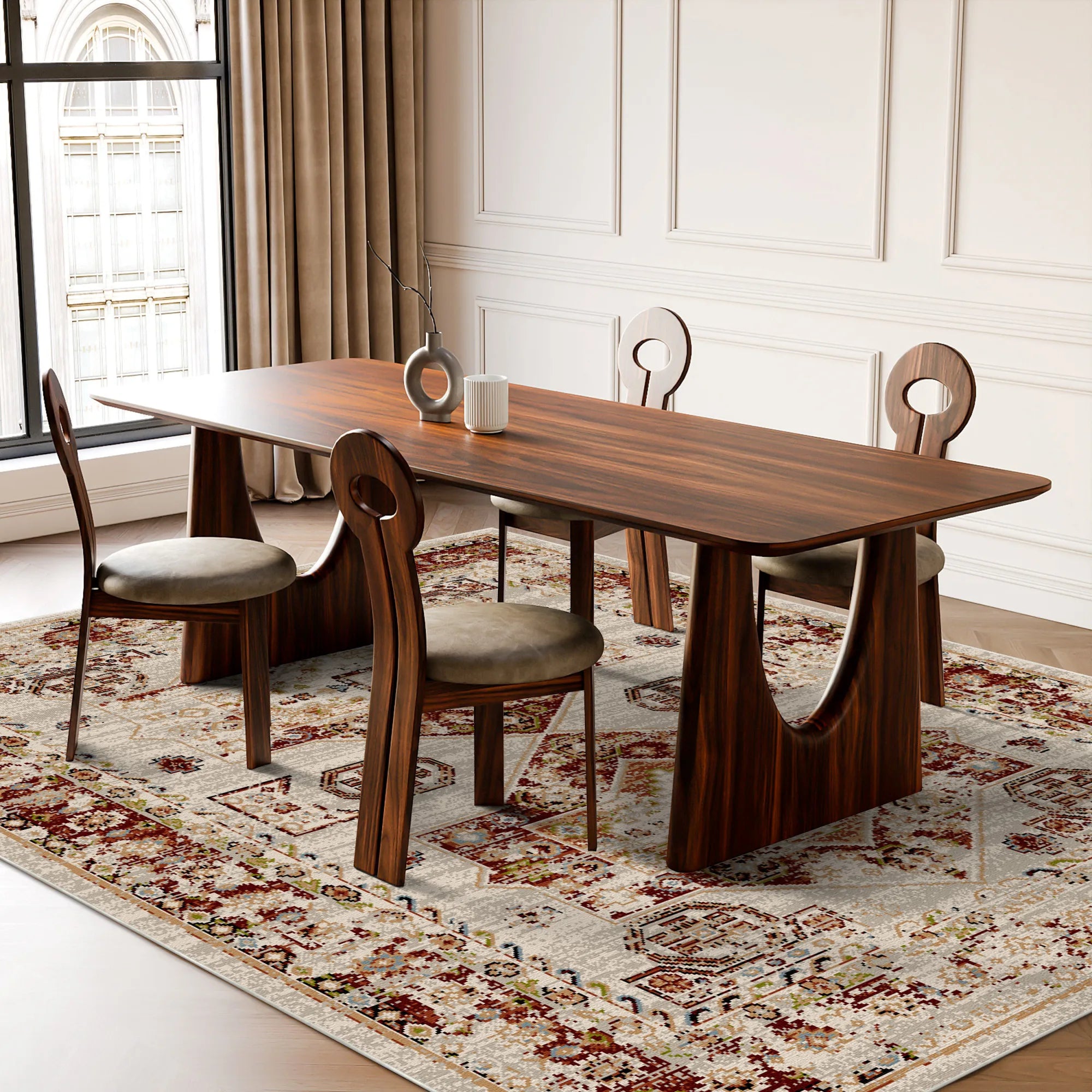 Verleihen Sie Ihrem Zuhause mit dem waschbaren Vintage-Teppich „Petra Clay“ den warmen Charme vergangener Zeiten. Inspiriert vom rosaroten Stein untergegangener Städte, besticht dieses exquisite Stück aus unserer Ethnic-Kollektion durch ein traditionelles Medaillonmuster in satten Terrakotta-, Rostorange- und Ziegelrottönen. Die filigranen Motive heben sich von einem cremefarbenen Hintergrund ab und werden durch Akzente in Olivgrün und verwittertem Blau ergänzt. Die markante, leicht abgenutzte Oberfläche verleiht ihm den authentischen Charme eines wertvollen Antiquitätenstücks und macht ihn zum perfekten Blickfang für rustikale Landhäuser, Wohnzimmer im Bohème-Stil oder traditionelle Räume, die einen Hauch von natürlicher Eleganz suchen.