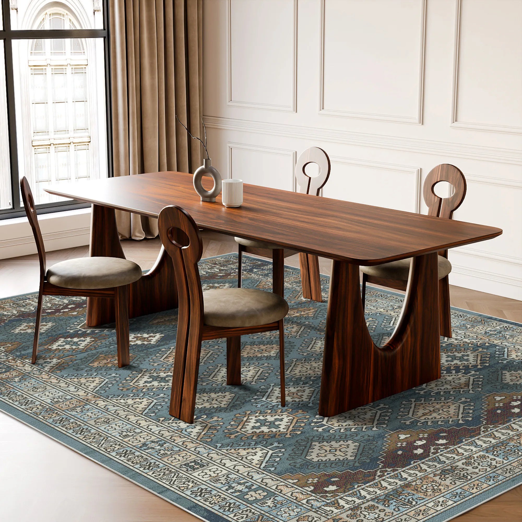 Verleihen Sie Ihrem Rückzugsort mit dem waschbaren Teppich „Samarkand Sky Tribal“ eine ätherische Schönheit und nomadische Eleganz. Inspiriert von den legendären Oasen der Seidenstraße und dem sanften Morgenlicht, das sich in antiken azurblauen Fliesen spiegelt, bietet dieses Design eine atemberaubende Interpretation traditioneller Kabile-Geometrie. Der Teppich besticht durch ein rhythmisches Feld aus gestuften Medaillons in einer raffinierten Farbpalette aus Honiggold, Mandelbraun und Elfenbein auf einem ruhigen, staubblauen Hintergrund. Eine wunderschön gealterte Stone-Wash-Oberfläche mildert die filigranen Muster und verleiht dem Stück den authentischen Charakter eines seltenen textilen Erbstücks, das in einer historischen Wüstenstadt entdeckt wurde. Er ist die perfekte Wahl für ein helles Wohnzimmer im skandinavischen Stil, eine ruhige Master-Suite oder ein modernes Homeoffice im Küstenstil, das historische Tiefe mit einer leichten und luftigen Atmosphäre verbinden möchte.
