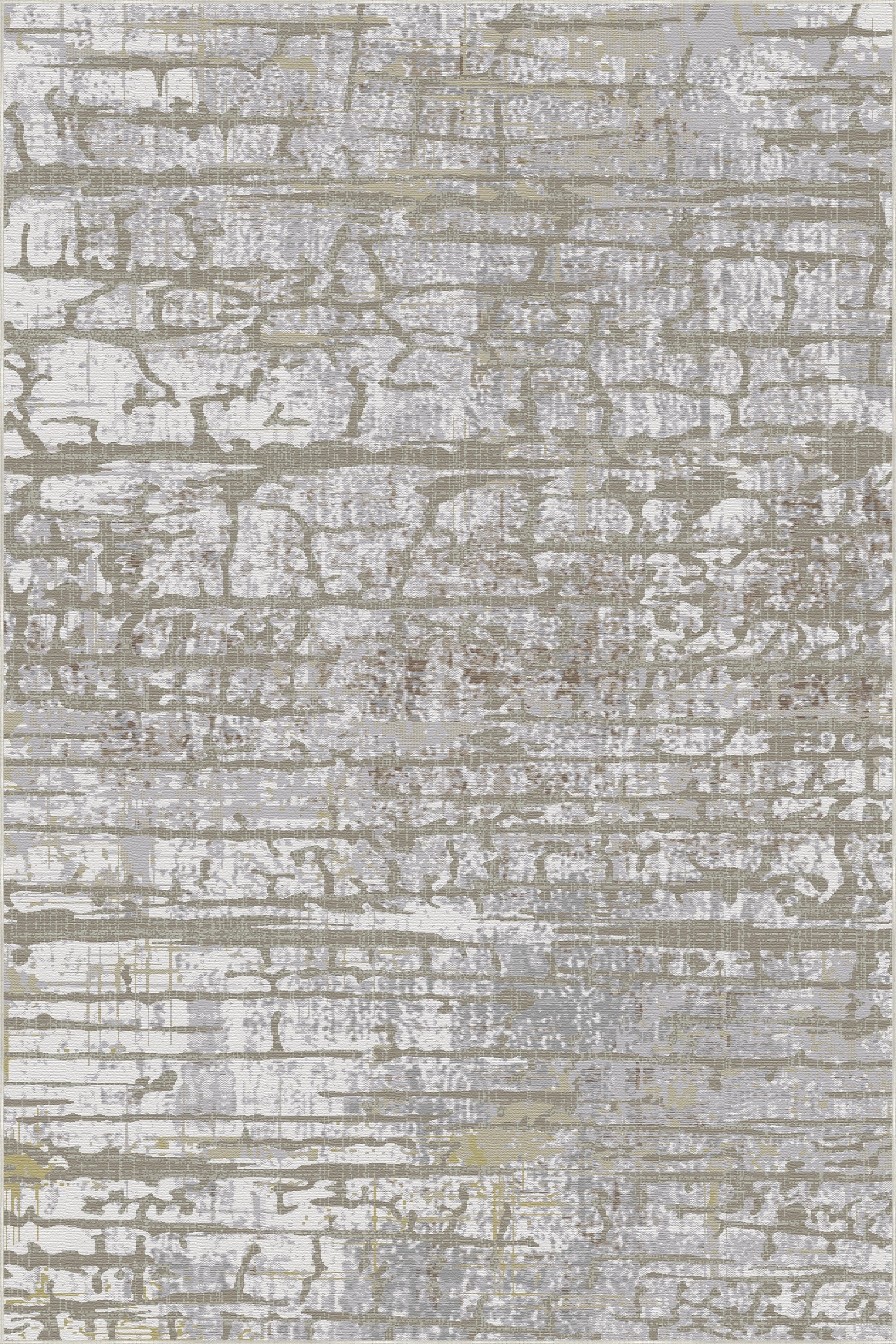 Verleihen Sie Ihrem Zuhause mit dem abstrakten Teppich „Sandstein-Schiefer“ im Used-Look die natürliche Schönheit. Dieses optisch faszinierende Stück besticht durch ein komplexes, vielschichtiges Design, inspiriert von alten Steinmauern und verwitterten urbanen Oberflächen. Die Komposition zeigt ein organisches, gitterartiges Muster, das erdige , warme Beige- und Taupetöne mit kühlen silbergrauen und dezenten Schieferakzenten verbindet. Die stark abgenutzte Optik erzeugt ein Gefühl von zeitloser Geschichte und moderner Tiefe und macht den Teppich zur idealen Wahl für Lofts im Industriestil, moderne Landhaus-Interieurs oder zeitgenössische Räume, die organische Texturen zelebrieren.