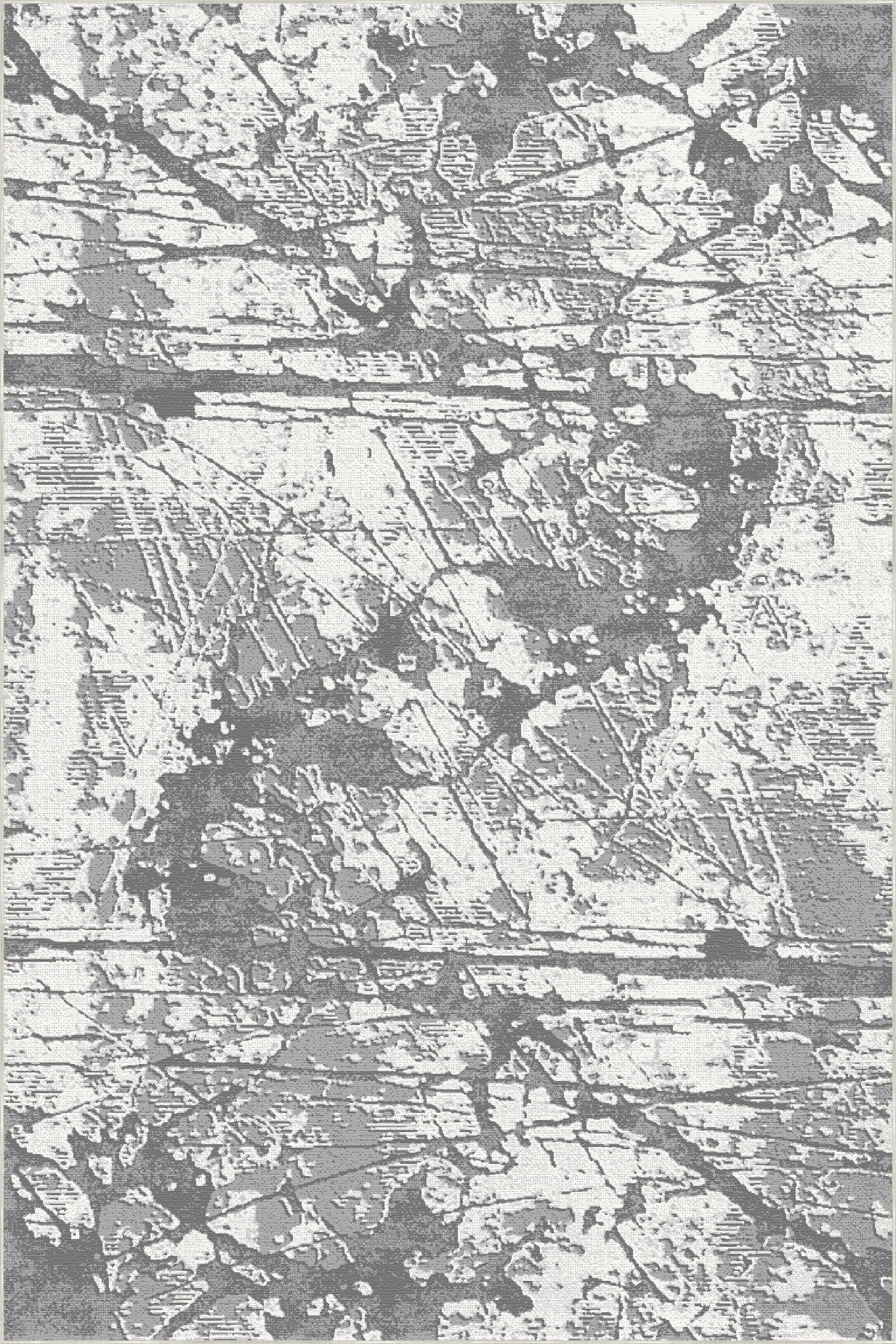 Verleihen Sie Ihrer Einrichtung mit dem abstrakten Teppich „Slate Fracture Distressed Abstract“ einen markanten, industriellen Touch. Dieses ausdrucksstarke Stück besticht durch ein kontrastreiches Design, inspiriert von verwittertem Stein und urbanen Texturen. Es zeigt ein komplexes Netzwerk aus „rissigen“ Linien und fragmentierten Formen. Die edle Farbpalette wird von tiefen Schiefergrau- und Anthrazittönen dominiert, die einen wunderschönen Kontrast zum klaren weißen und silbergrauen Hintergrund bilden. Dieser ausdrucksstarke, vielschichtige Look schafft eine Atmosphäre moderner, roher Eleganz und macht den Teppich zum idealen Blickfang für minimalistische Wohnzimmer, Lofts im Industriestil oder moderne Schlafzimmer.