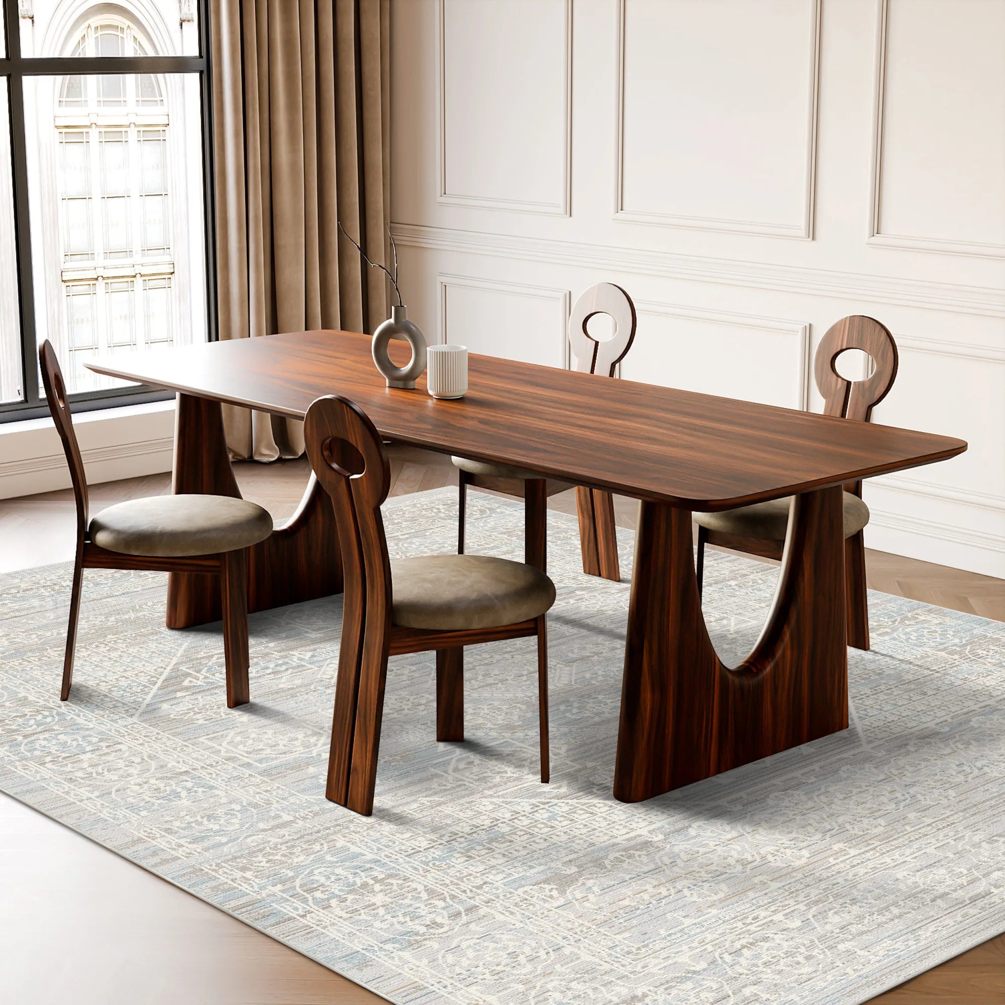 Der Stellar Frost Geometric Teppich vereint auf meisterhafte Weise die atemberaubende Ästhetik des „Ausradierten“ mit den Anforderungen des modernen Haushalts. Er ist aus hochwertigen, hochdichten Polyesterfasern gewebt und bietet ein samtweiches, wolkenartiges Gefühl unter den Füßen bei gleichzeitig hoher Strapazierfähigkeit im Alltag. Dank unserer fortschrittlichen Farbfixierungstechnologie bleiben die dezenten Grautöne und die kristallinen Details auch nach vielen Wäschen strahlend schön. Für maximale Sicherheit sorgt die hochwertige, integrierte rutschfeste Unterseite, die fest auf Ihren Parkett- oder Fliesenböden haftet und dafür sorgt, dass der Teppich ohne zusätzliche Unterlagen perfekt flach und sicher liegt. Der Teppich ist vollständig maschinenwaschbar und für die Verwendung mit Saugrobotern optimiert. So bringt er den zeitlosen Charme eines modernen Vintage-Meisterwerks ganz ohne Pflegeaufwand in Ihr Zuhause.