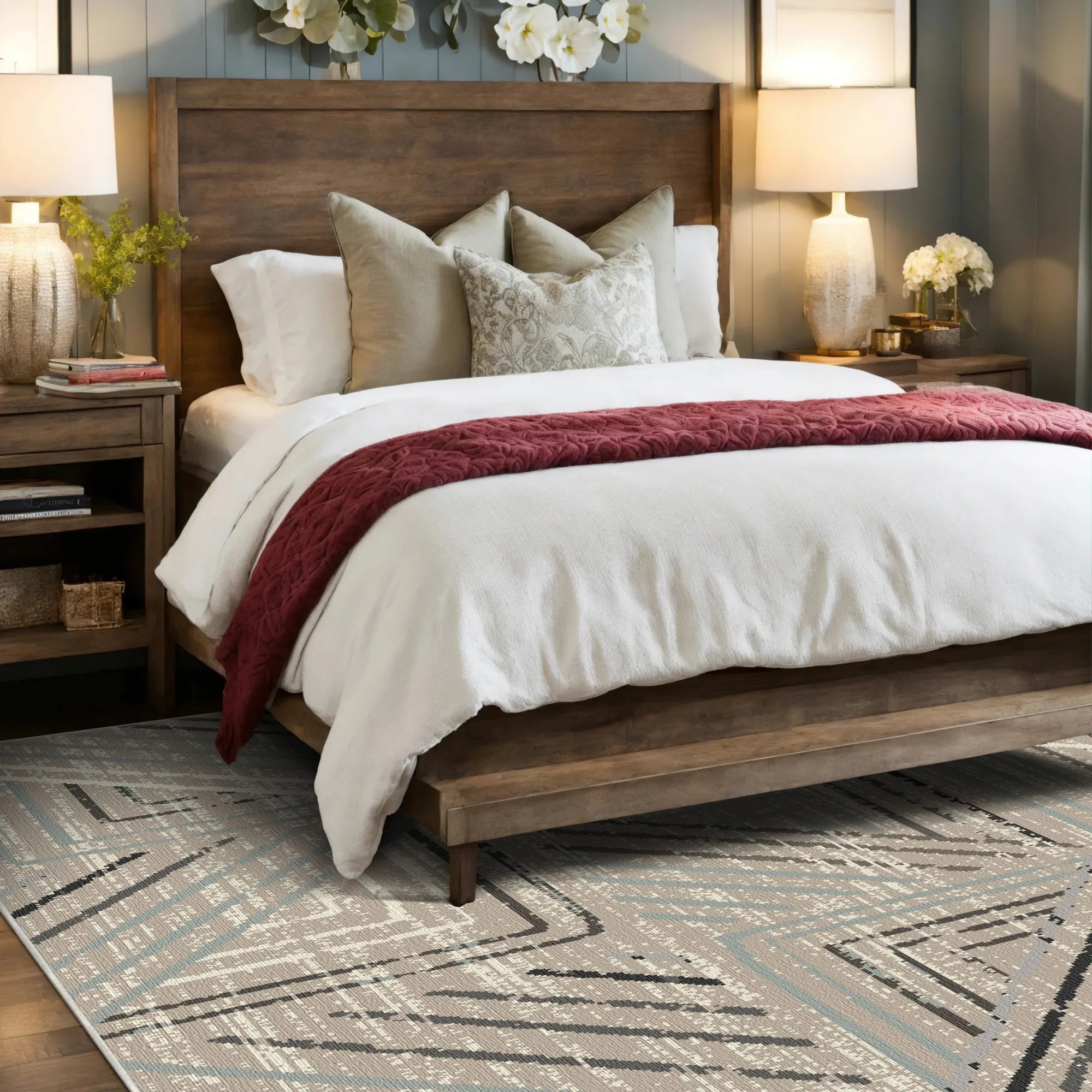 Taupefarbener Geometrischer Waschbarer Teppich Labyrinth