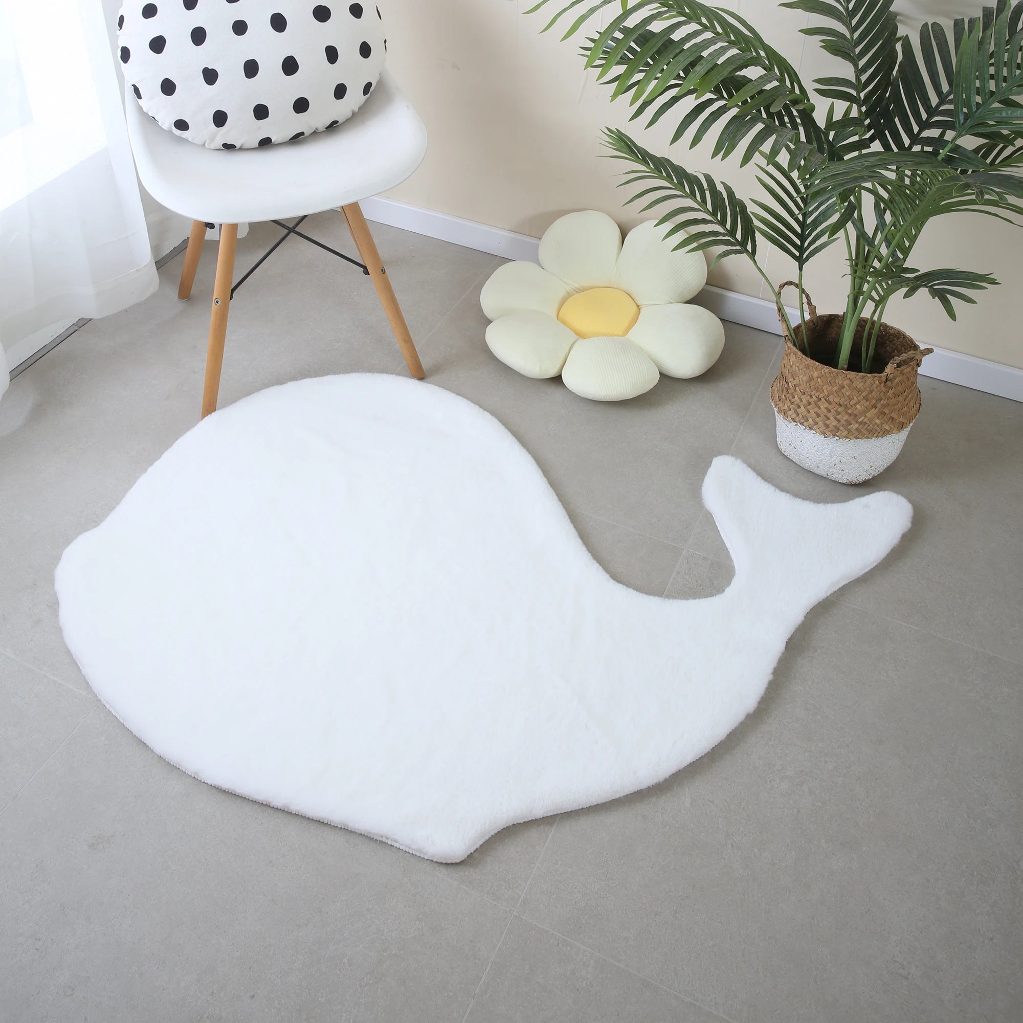 Bringen Sie mit diesem bezaubernden Teppich in Walform in klarem, modernem Weiß einen besonderen Akzent in Ihr Kinderzimmer. Das süße, verspielte Design schafft eine freundliche und fantasievolle Atmosphäre – perfekt für ein Kinderzimmer oder Spielzimmer im maritimen Stil. Hergestellt aus weichem und strapazierfähigem Polyester bietet er eine sichere und bequeme 25 mm hohe Floroberfläche für alle Meeresabenteuer.