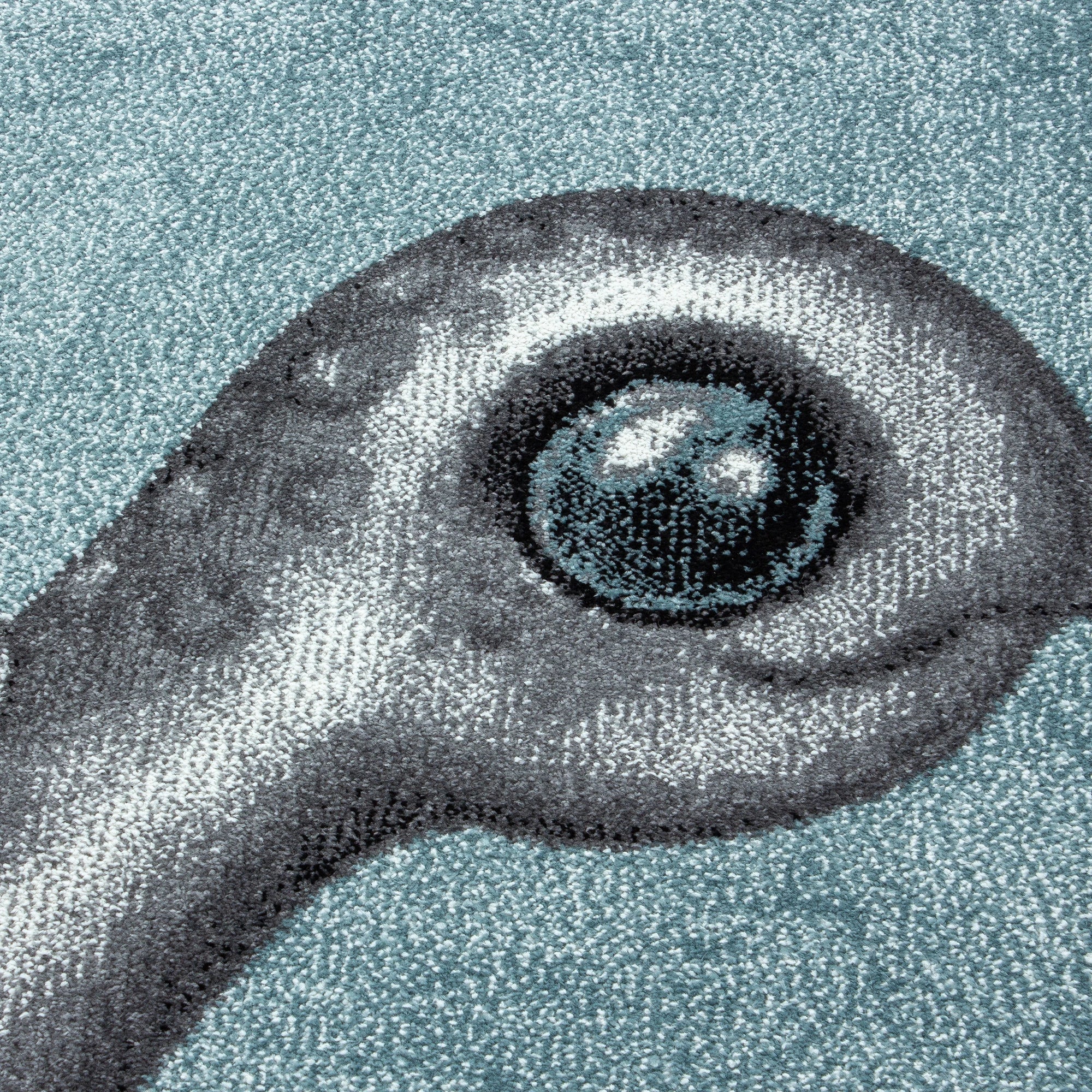 Ein charmanter und moderner Teppich mit einem niedlichen blauen Schildkrötendesign.